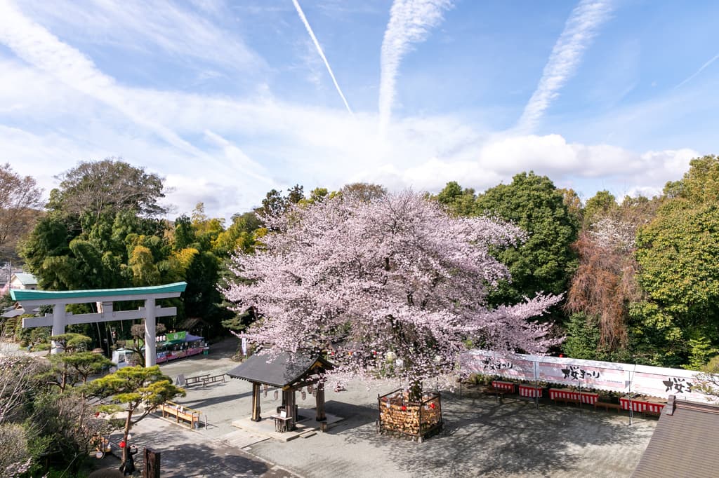 At the center of the shrine grounds stands the "Ryoen Sakura," a Somei Yoshino cherry tree approximately 70 years old and 20 meters tall, and the symbol of the shrine. Its nickname was selected in 2023 from around 150 public submissions, reflecting both the shrine's association with the divine power of "en" (connections and fate) and Hadano's reputation as a city of cherry blossoms. When in full bloom, the tree creates a breathtaking spectacle.