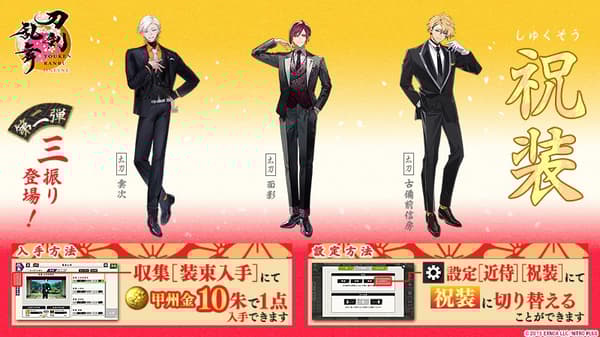 After the conditions are met, players can also rarely obtain Suishinshi Masahide and Minamoto Kiyomaro by winning battles at the "Edo Hantei Kamiyashiki" square.