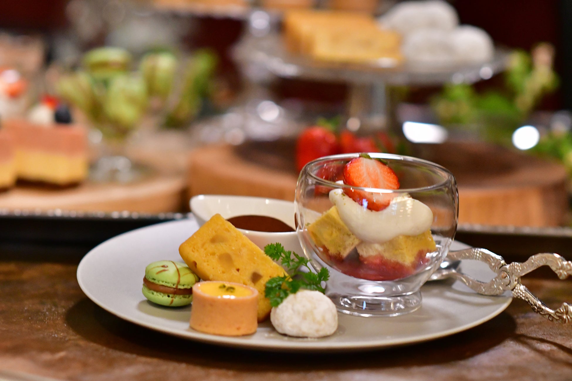 After the meal, guests can enjoy a dessert wagon service where they can select their favorite sweets. The lunch experience concludes with a leisurely moment to savor the light course's lingering flavors.