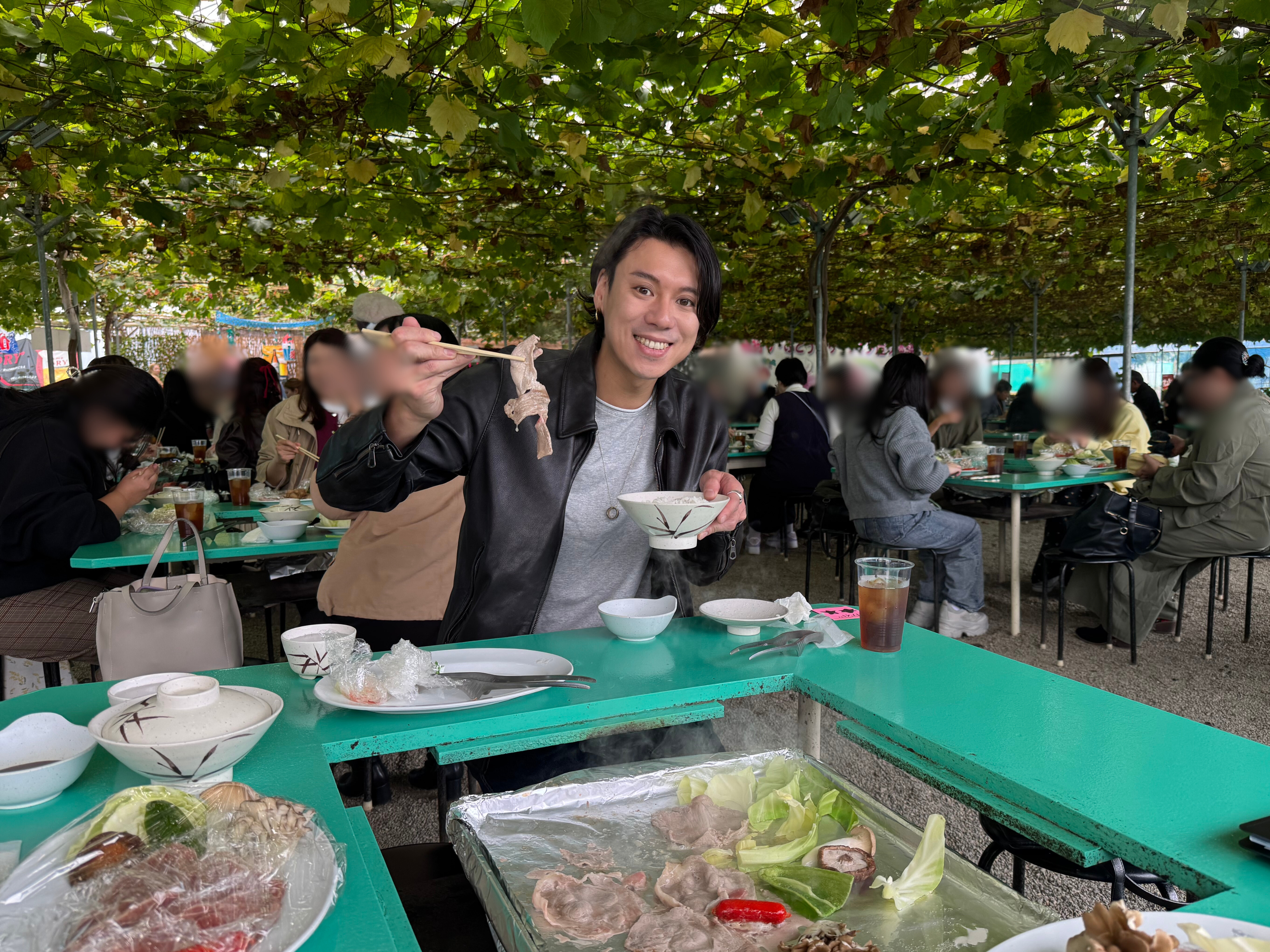 We started with a luxurious BBQ time at Misaka Farm Grape House. While enjoying the atmosphere under the grape arbor, we had meat🍖