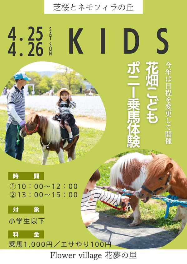 Children can interact with and ride ponies in the flower fields. This year, the event dates have been moved up earlier than usual.