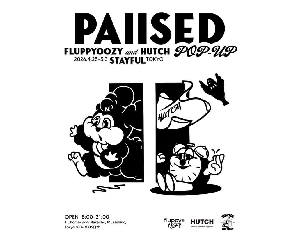 A pop-up event titled "PAUSED" — a collaboration between Taiwan-based apparel brand HUTCH and character-driven creative brand FLUPPYOOZY — is taking place at STAYFUL LIFE STORE in Musashino, Tokyo from Saturday, April 25 to Sunday, May 3, 2026.