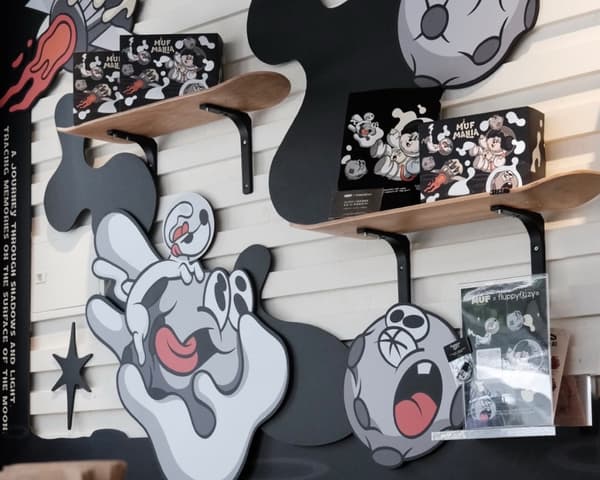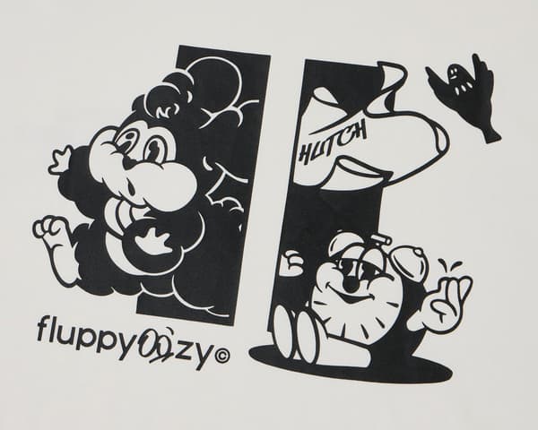 The pop-up brings together HUTCH's T-shirts alongside original works and items by FLUPPYOOZY. For this event, FLUPPYOOZY created a specially commissioned illustration representing all three parties — HUTCH, FLUPPYOOZY, and STAYFUL — and an event-exclusive T-shirt using that visual is also planned.