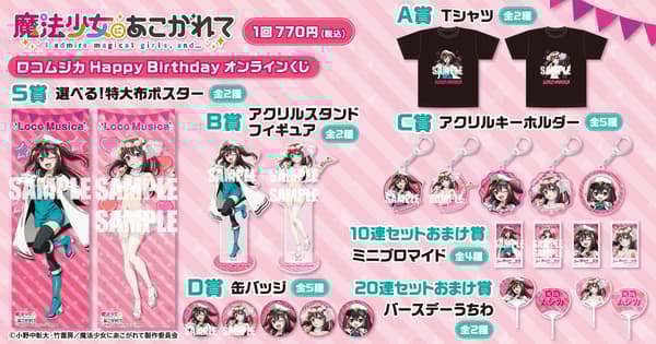 A new online lottery celebrating Loco Musica's birthday has arrived on Kujibikido, the online lottery service operated by KADOKAWA. The "Gushing over Magical Girls Loco Musica Happy Birthday Online Lottery" went on sale from April 15, 2026 (Wednesday), offering a range of original merchandise featuring specially drawn illustrations of the beloved character.