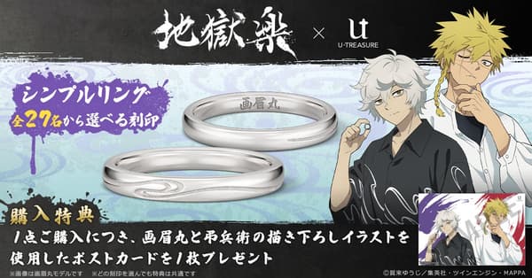 U-TREASURE has opened pre-orders for a new collaboration item based on the TV anime Hell's Paradise: Jigokuraku: a set of acrylic ring stands featuring original illustrations of characters Gabimaru and Choubee. Pre-orders run from April 9 (Thu) to May 11 (Mon), 2026, at the U-TREASURE Online Shop, U-TREASURE Concept Stores in Ikebukuro and Shinsaibashi, and Animate. This marks U-TREASURE's first time handling merchandise for this title.