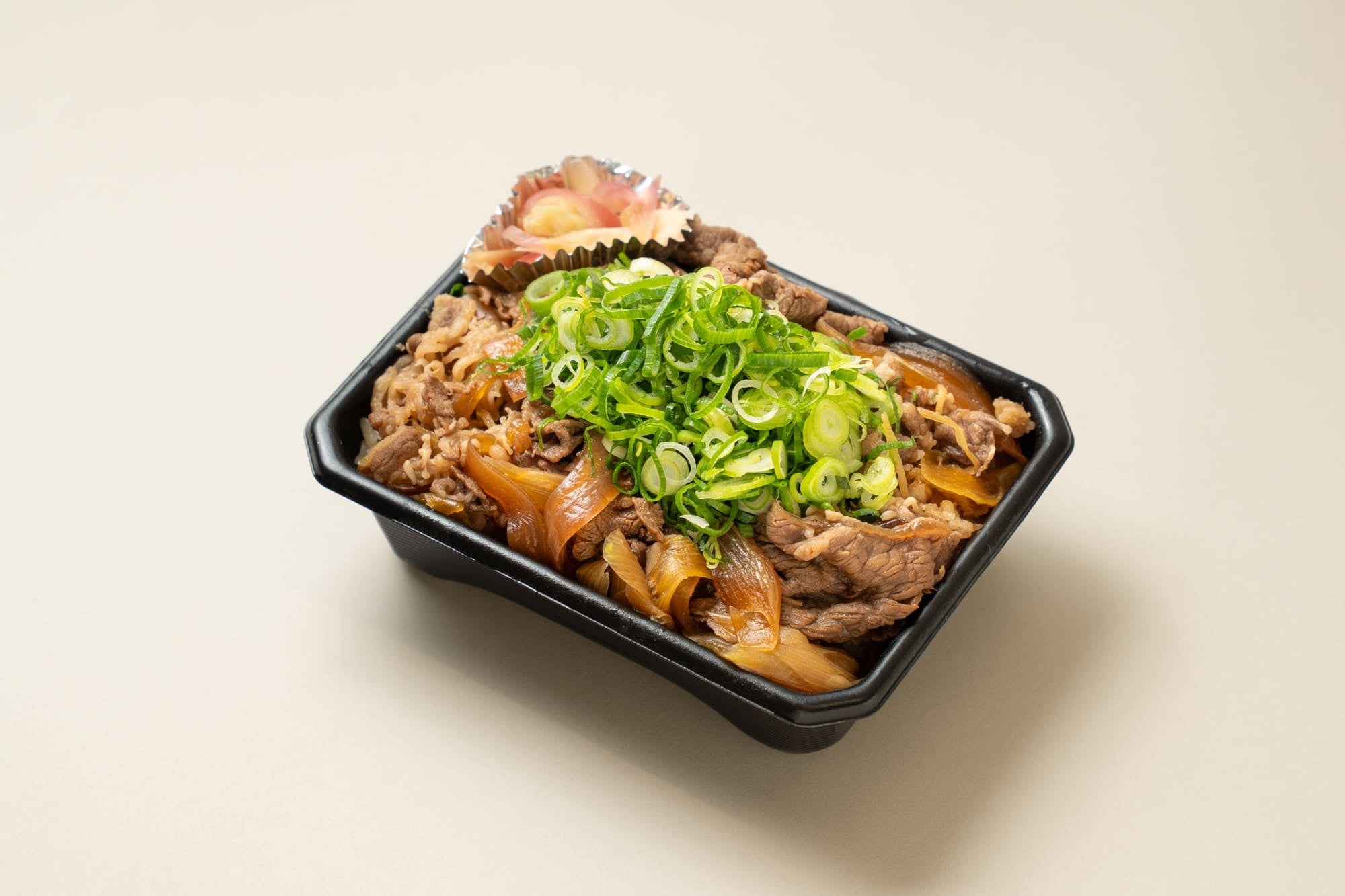A beef bowl topped with sweet and savory Akagyu beef and generous amounts of Kujo green onions.