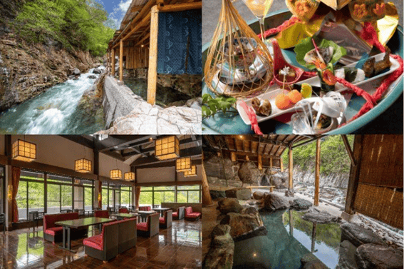 Embraced by the untouched nature of the Kinugawa River's source region, the resort offers natural hot spring baths with flowing spring water, five outdoor baths overlooking the valley scenery, and kaiseki cuisine featuring abundant seasonal local ingredients. Guests can enjoy a luxurious stay in a tranquil atmosphere where time flows gently, providing healing for both body and mind.