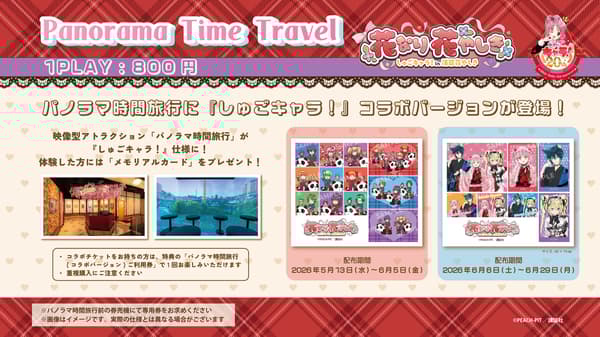 The "Panorama Time Travel" attraction, which features a 4-screen multi-vision experience, will be transformed into a special Shugo Chara! version. Those who experience it will receive one "Memorial Card" (1 type for the first half / 1 type for the second half).