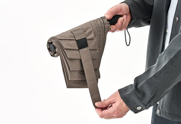 The folding umbrella market has seen a growing number of products designed to close neatly. Many achieve this by laminating PET panels onto the canopy fabric — a solution that keeps the folds tidy, but also makes umbrellas heavier and bulkier when stored.
