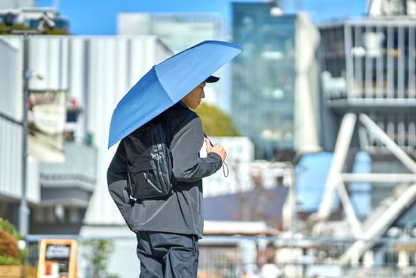 The hassle of folding it up. The anxiety of strong winds. Heat and UV rays. The weight of carrying it. These four frustrations — felt by city commuters every day — were the driving force behind this umbrella's development, all addressed in a single product.