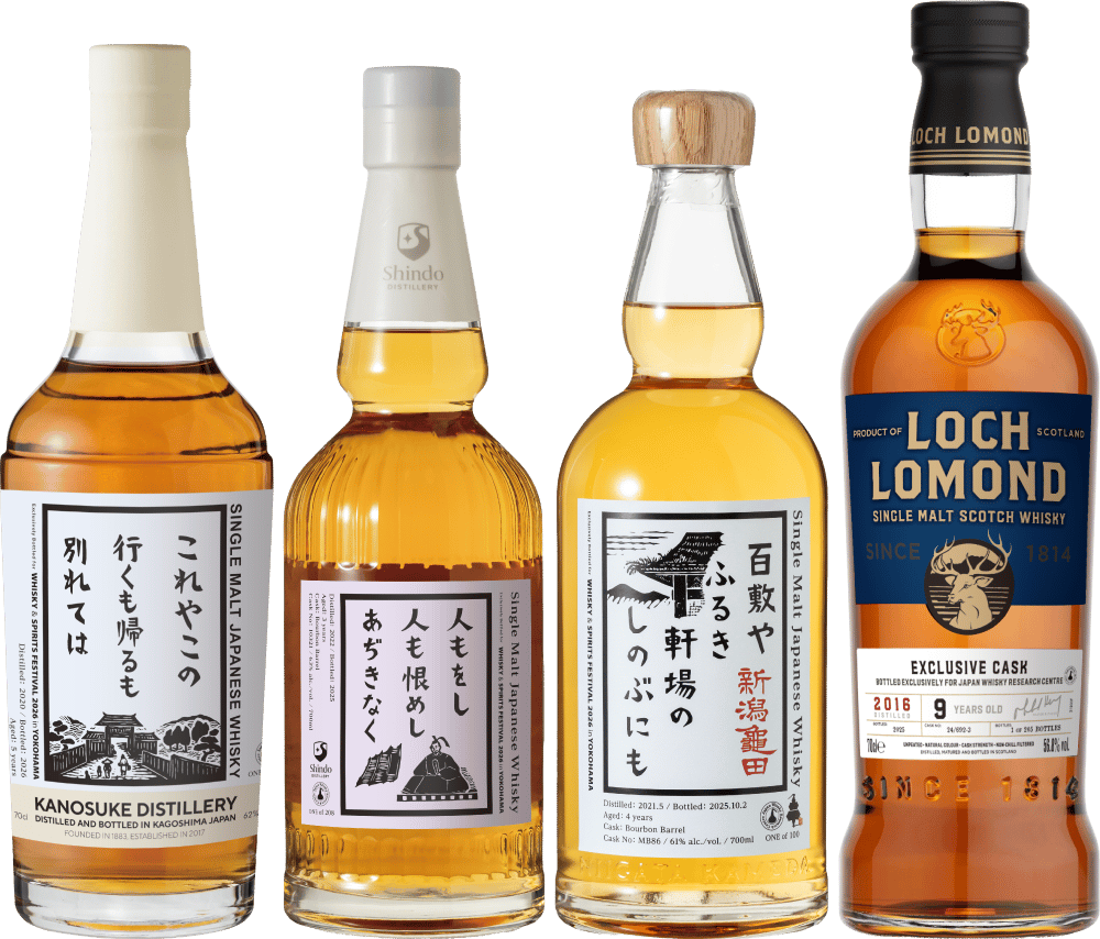 All four bottles carry event-exclusive labels and are available only through lottery to holders of an admission ticket for the Whisky & Spirits Festival 2026 in Yokohama.