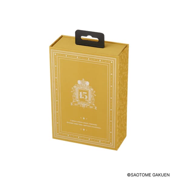 El paquete presenta el logotipo del 15.º aniversario como elemento de diseño principal, con detalles de lámina aurora que añaden elegancia y prestigio.