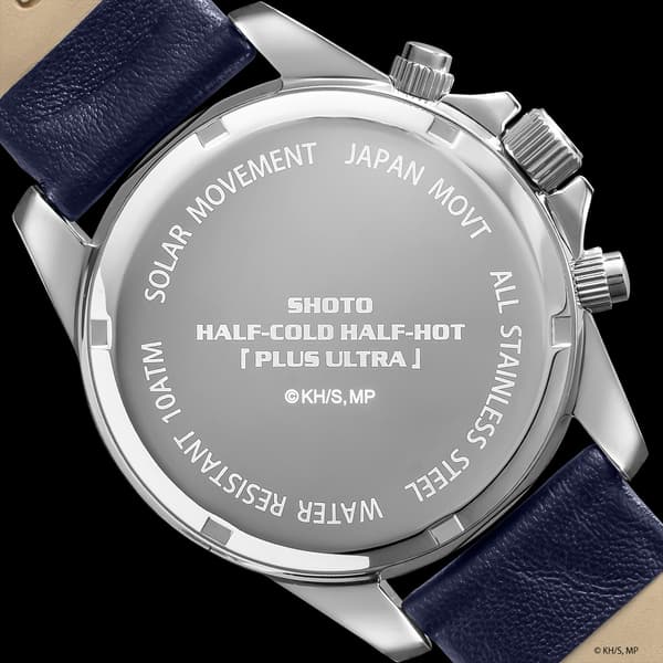 Hielo y fuego: Shoto Todoroki, compañero de clase de Deku, posee dos poderes opuestos. Simbolizando su Quirk "Half-Cold Half-Hot", la esfera presenta una subesfera azul a las 9 en punto que representa el hielo y una subesfera roja a las 3 en punto que representa las llamas. Las manecillas de las horas y los minutos están separadas por colores en azul y rojo, con las manecillas que se cruzan en el centro como un límite entre el hielo y el fuego.