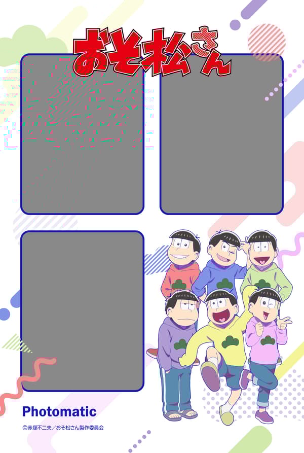 Desde que se emitió su primera temporada en 2015, Mr. Osomatsu ha desarrollado múltiples series y ha ganado popularidad entre un amplio público, con su cuarta temporada emitida en 2025. La colaboración ofrece 5 diseños de marcos diferentes, incluidos marcos que permiten a los fans tomar fotos al estilo de dos tomas con los queridos hermanos sextillizos. Estos marcos estarán disponibles en 11 ubicaciones de fotomatones en todo el país, incluyendo Tokio, Osaka y Nagoya.