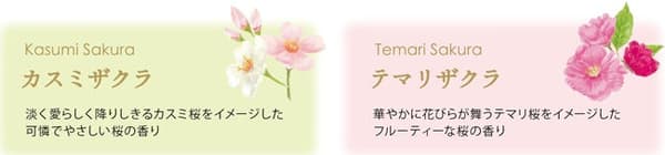 La serie «SAKURA - Romantic Bloom» presenta dos tipos de fragancias de flor de cerezo: Kasumi Zakura y Temari Zakura. La línea incluye artículos para el cuidado de las manos, artículos para el baño, fragancias para el hogar y juegos de regalo.