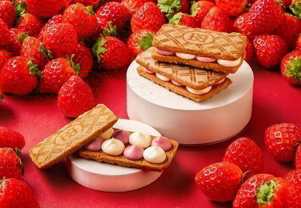 입안에서 살살 녹는 버터 휘핑 쇼콜라와 달콤하고 톡 쏘는 듯한 상큼한 딸기 휘핑 쇼콜라, 두 가지 종류의 휘핑 쇼콜라를 번갈아 가며 듬뿍 짜서 바삭한 버터 사브레 쿠키 사이에 부드럽게 샌드했습니다. 한 입 베어 물면 달콤한 딸기의 새콤함과 어우러지는 부드러운 버터 휘핑 쇼콜라의 풍미를 느낄 수 있습니다.