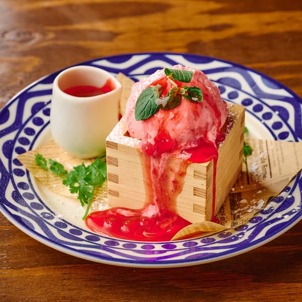 일본-모던한 프레젠테이션을 위해 전통적인 나무 마스 컵에 담겨 제공되는 새로운 디저트입니다. 수제, 풍부한 마스카르포네 푸딩에 딸기 아마오 아이스크림을 듬뿍 얹었습니다. 먼저 그대로 즐기면서 푸딩의 크리미함과 아이스크림의 상쾌한 단맛을 음미한 다음, 함께 제공되는 딸기 소스를 추가하여 더욱 풍부하고 과일 향이 가득한 경험을 즐겨보세요.