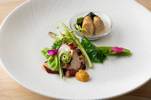 - 전통 소스로 졸인 문어, 달콤한 간장에 재운 새끼 도미알, 독활