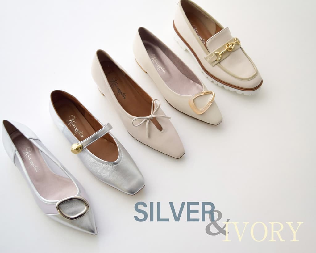 이번 시즌 봄 패션에서 아이보리와 실버 두 가지 색상이 큰 인기를 얻고 있습니다. 긴자 카네마츠는 트렌디한 색상의 새로운 신발 컬렉션을 공개하여 일상적인 룩에 은은하면서도 스타일리시한 터치를 더할 수 있도록 디자인했습니다. 로퍼부터 펌프스까지, 새로운 컬렉션은 발끝부터 시작하여 가벼운 계절의 에너지를 당신의 의상에 불어넣습니다.