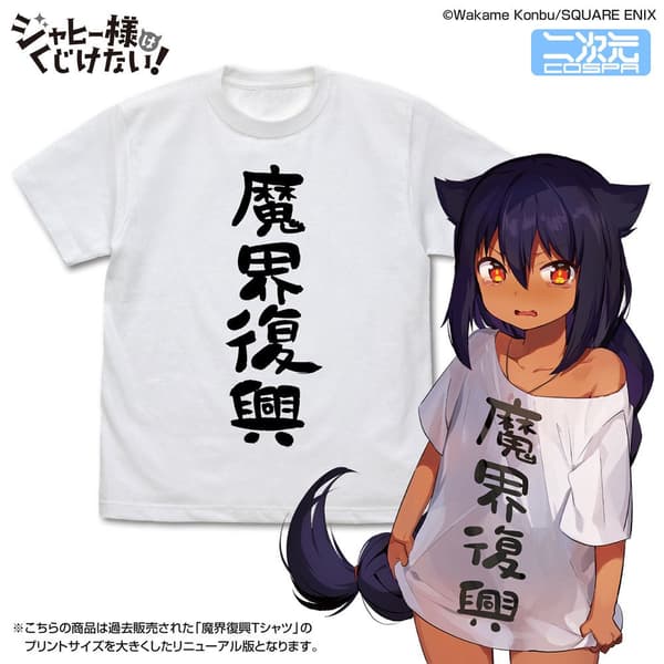 쟈히 님이 입고 다니는 것과 같은 '마계 부흥' 슬로건이 크고 굵은 디자인으로 인쇄되었습니다. 기존 '마계 부흥 티셔츠'의 프린트 크기를 키운 리뉴얼 버전입니다.