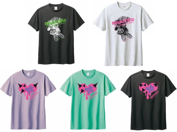 전시 작품 “KAWAII CORE”와 “Plushie Hell”에서 영감을 받은 두 가지 티셔츠 디자인.
