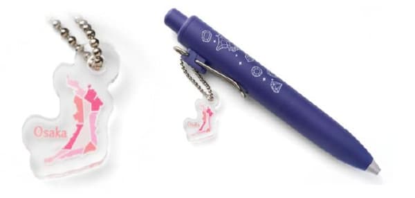 두 가지 이벤트 한정 현 모양 키홀더가 판매될 예정입니다. 오사카부 디자인은 분라쿠를 색상 모티브로 사용했으며, 효고현 디자인은 히메지성을 특징으로 합니다.
