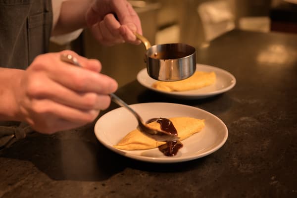 라이브 키친에서 준비되는 계란 요리에는 핫초 미소 소스, 순한 맛의 대만식 다진 고기 소스, 데미글라스, 케첩 등 4가지 소스를 선택할 수 있습니다. 각 소스는 아침 식사에 지역 특유의 풍미를 더합니다.