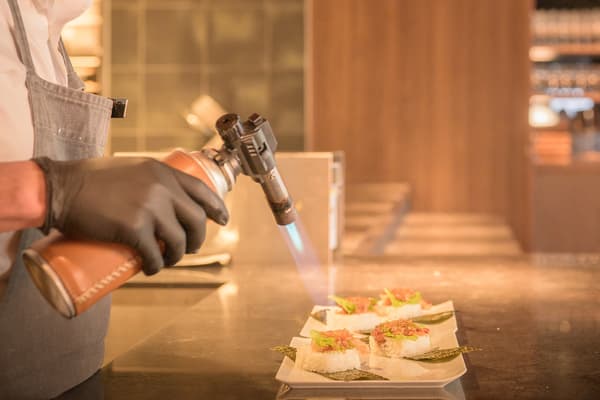 “THE 7th TERRACE”는 자체적인 해석을 더한 요리도 선보입니다. 핫초 미소 카레는 매콤한 카레에 핫초 미소와 버터를 넣어 깊고 부드러운 풍미를 선사합니다. 또 다른 대표 메뉴는 “7th TERRACE 오리지널 텐무스”입니다. 달콤 짭짤한 소스에 절인 새우튀김에 차조기 잎을 얹고 호바 미소와 함께 구워냅니다. 은은하게 풍기는 미소 향은 이곳에서만 맛볼 수 있는 특별한 경험을 선사합니다.