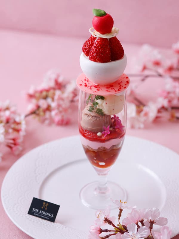 스트링스 오모테산도 1층에 위치한 Cafe & Dining ZelkovA(도쿄도 미나토구 기타아오야마)에서 2026년 4월 1일(수)부터 4월 20일(월)까지 기간 한정으로 ‘딸기 & 사과 하나미 파르페’를 판매합니다.