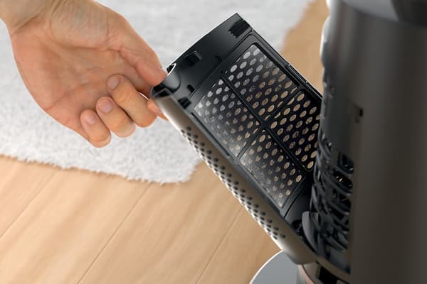 흡입 필터는 한 번의 터치로 분리되며 세척이 가능합니다. 본체는 닦아내기만 하면 되며 팬 블레이드에서 지루하게 먼지를 제거할 필요가 없습니다.