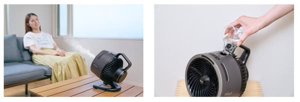 통합 물 탱크는 간단합니다. 물을 채우고 미스트 버튼을 누르면 최대 1시간 동안 미스트를 즐길 수 있습니다. 생성되는 초미세 ‘드라이 미스트’는 가구를 적시지 않고 실내에서 사용해도 안전합니다. 증발 냉각 효과는 주변 온도를 최대 2°C까지 낮출 수 있어 더운 여름 날씨에 쾌적하게 지낼 수 있습니다.