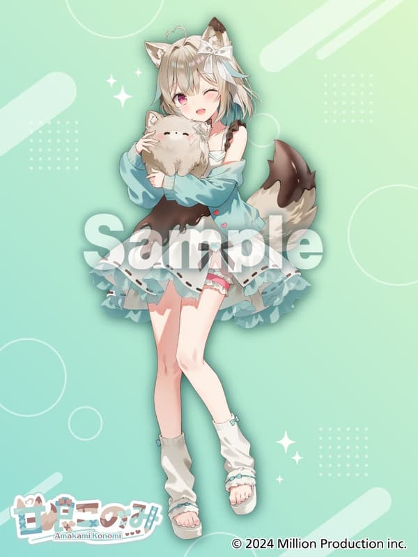 이번 콜라보 경품을 위해 ‘잠옷’ 테마의 새로운 일러스트가 독점적으로 제작되었습니다. 디자인은 아마카미 코노미의 이미지 컬러를 기반으로 하며, 의상 전체에 그녀의 캐릭터를 반영하는 디테일과 액세서리가 포함되어 있습니다. 팬들은 그녀가 시청자를 바라보며 윙크하는 표정과 그녀의 품에 안겨 행복해 보이는 모후마루도 알아볼 수 있을 것입니다.