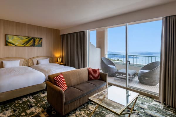 유미하리노오카 호텔은 나가사키현 사세보시 유미하리다케 산 정상 인근에 위치한 리조트 호텔로, 사이카이 국립공원과 쿠주쿠시마의 바다와 녹지로 둘러싸여 있습니다. 호텔 레스토랑과 전망 욕탕에서는 쿠주쿠시마의 절경과 사세보 시내에서 항구로 이어지는 야경을 감상할 수 있습니다. 레스토랑에서는 이탈리아 요리를 중심으로 사세보 스타일 레몬 스테이크를 비롯한 계절 로컬 식재료를 사용한 다채로운 메뉴를 제공합니다.
