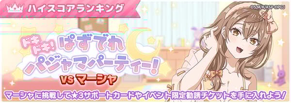 อีเวนต์ทำคะแนนสูงสุด Dokidoki! Pazudere Pajama Party! VS Masha ได้เริ่มขึ้นแล้ว! ในอีเวนต์นี้ ผู้เล่นสามารถรับรางวัลจากการจัดอันดับคะแนนสูงสุดในช่วงกิจกรรม นอกจากนี้ยังมีร้านค้าแลกเปลี่ยนที่คุณสามารถนำคะแนนที่สะสมจากด่านอีเวนต์มาแลกรับการ์ดสนับสนุนพิเศษและไอเทมต่างๆ ท้าทายด่านซ้ำๆ เพื่อรับการ์ดสนับสนุนระดับ ☆3 และตั๋วกาชาปองกันเถอะ