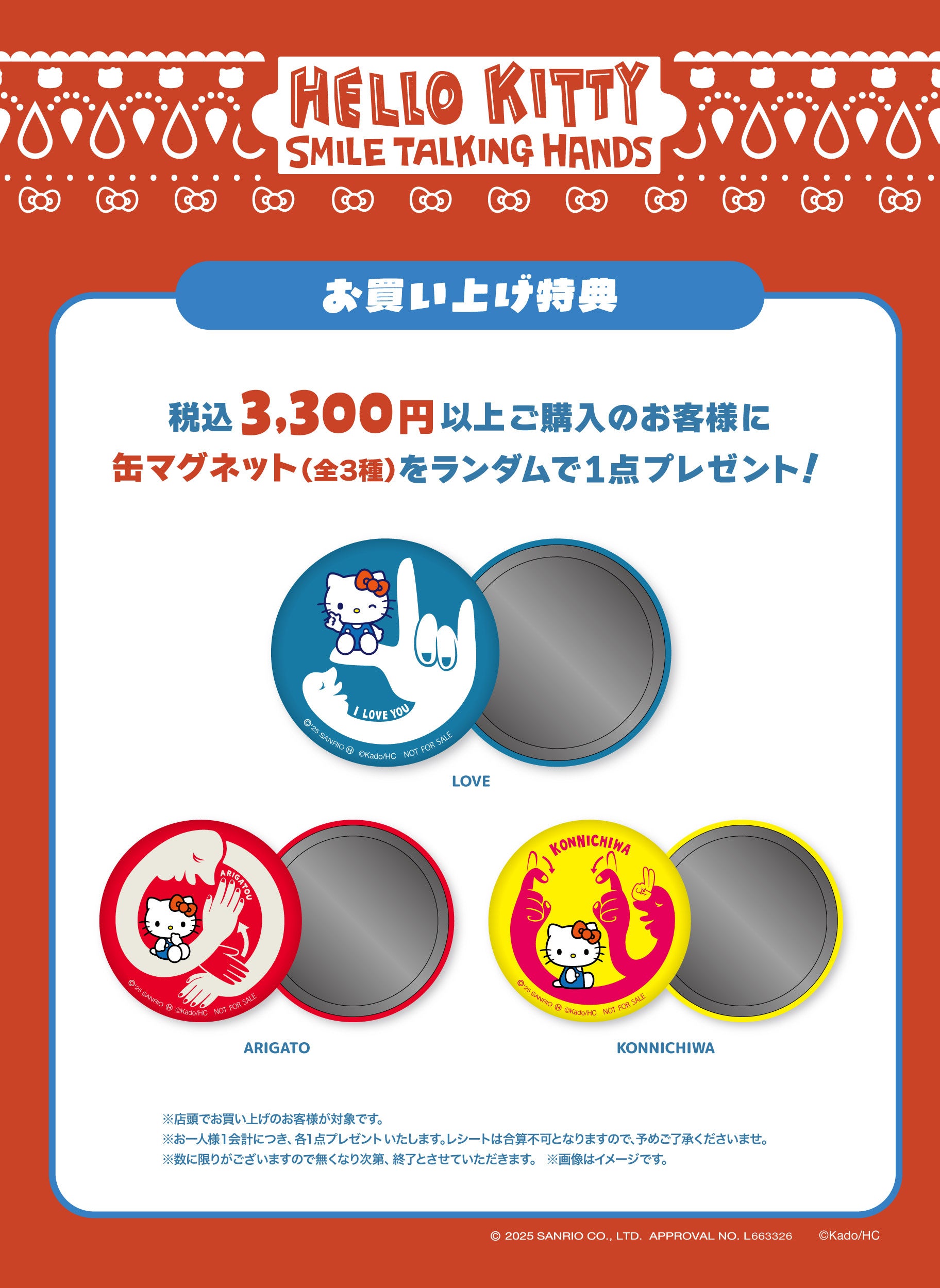ลูกค้าที่ซื้อสินค้าตั้งแต่ 3,300 เยนขึ้นไป (รวมภาษีแล้ว) ต่อรายการ จะได้รับ “Can Magnet (3 แบบ)” แบบสุ่มเป็นของขวัญ 1 ชิ้น (จนกว่าสินค้าจะหมด)