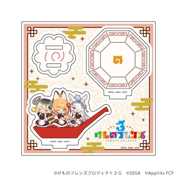 อะคริลิกสแตนด์มีขนาดด้านละสูงสุด 15 ซม. ภาพประกอบเก็บรายละเอียดต่างๆ ได้อย่างดีเยี่ยม ทั้งสีหน้า ท่าทาง ชุดจีน และอุปกรณ์ที่เฟรนด์ถืออยู่