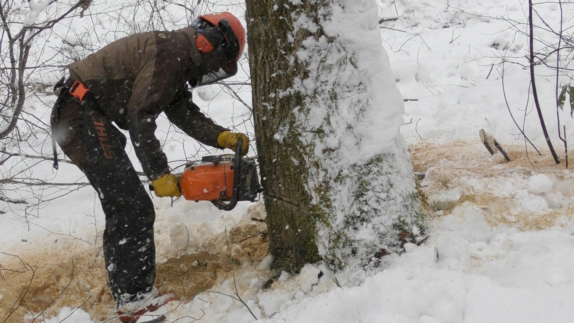 การตัดไม้เป็นงานที่คุกคามชีวิต ด้วยหิมะที่อยู่ใต้ฝ่าเท้าและต้นไม้ที่อาจล้มลงในทิศทางที่ไม่คาดฝัน แม้แต่คนตัดไม้ที่มีประสบการณ์ก็ยังเสี่ยงต่อการบาดเจ็บสาหัส ในสถานที่ที่ตึงเครียดเหล่านี้ พนักงานร้านเฟอร์นิเจอร์ไม่สามารถทำอะไรได้ พวกเขายืนอยู่ในเขตปลอดภัย ฟังเสียงเลื่อยยนต์ แทบจะภาวนา