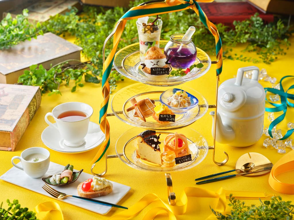 ชั้นบนสุด "Ground / Start of Adventure" ประกอบด้วยของคาว เช่น ซุปวิชิซัวส์, บรูสเกตตา และสโคนสดรสหัวหอมและเบคอน เมื่อลงไปสู่ระดับใต้ดิน ชั้น B1F ("Gateway of Trials") จะพบกับเครื่องดื่มอัญชันเจลลี่เคิร์ช, ฟรุตพาร์เฟต์ และชูครีมมะม่วง ถัดลงมาที่ชั้น B2F ("Green Forest and Treasure") มีทาร์ตมะม่วง, คุกกี้รูปดาบและโล่ และผลไม้พร้อมครีมโยเกิร์ต และในระดับลึกที่สุดชั้น B3F ("Deep in the Forest") ท่านจะได้พบกับบาสก์ชีสเค้กมะม่วง, สโคนแซนด์วิชคั้นด้วยครีมมะม่วง และมูสลิ้นจี่ราสเบอร์รี่ โดยแต่ละชุดมาพร้อมกับทางเลือกของชารอนเนเฟลด์ (Ronnefeldt) หรือกาแฟ