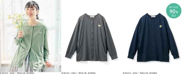 คาร์ดิแกนกัน UV ที่มาพร้อมงานปักลายอาจารย์เหมียวและดอกไม้อันละเอียดอ่อนบริเวณหน้าอก ผลิตจากผ้าฝ้ายผสมเนื้อบางเบาที่สามารถสวมใส่ได้ตั้งแต่ช่วงต้นฤดูใบไม้ผลิไปจนถึงฤดูใบไม้ร่วง มีดีไซน์ช่วงแขนที่ใส่สบายช่วยให้แมตช์กับการแต่งตัวด้านในได้หลากหลาย พร้อมกระเป๋าทั้งสองข้าง คอเสื้อทรง U ช่วยให้ลุคดูเรียบหรู มีให้เลือก 3 ลาย ได้แก่ มิโมซ่า, โคลเวอร์ และเจนเทียน