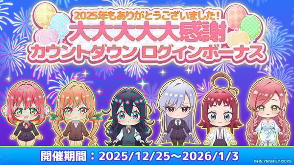 从12月25日(星期四)开始,将举办“盛大感谢倒计时奖励”登录活动,以感谢过去一年的支持。在活动期间,登录将奖励玩家可用于“100 Puzzle 2025全明星扭蛋”的扭蛋券,其中包括2025年全年出现的限时角色。每天登录以收集扭蛋券!