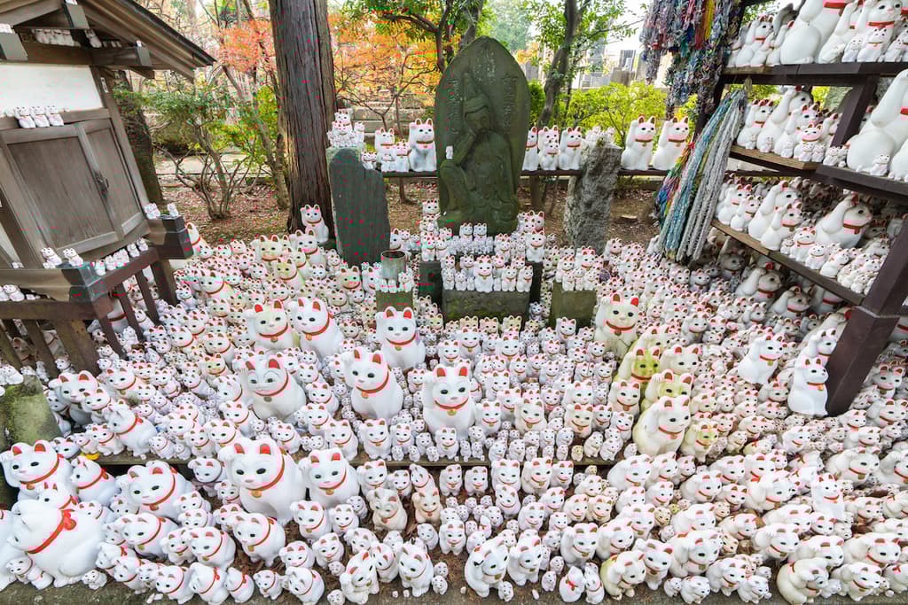 豪德寺位于东京世田谷区的一个安静住宅区,是一座著名的寺庙,据说是"招财猫"的发源地,长期以来作为最受欢迎的幸运符之一而受欢迎。
