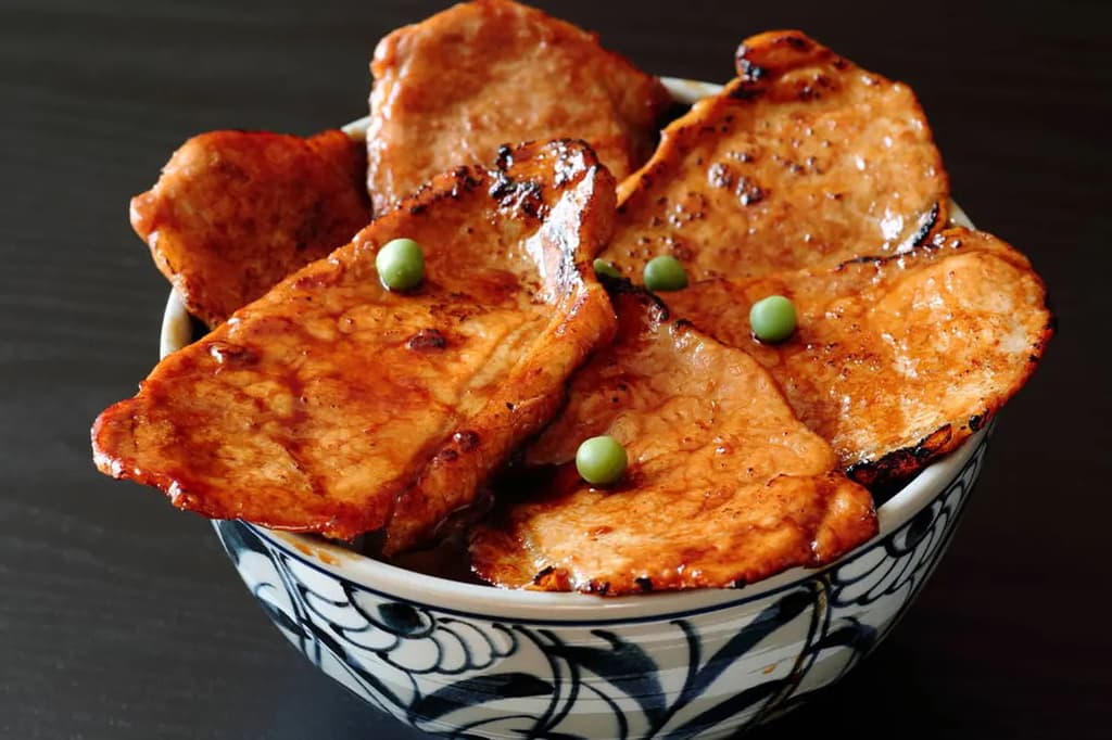 在昭和初期(1926-1989),带广市的一家餐厅旨在为辛勤工作的农民提供增强体力的食物,最初考虑使用鳗鱼。然而,由于鳗鱼的高成本和稀缺性,他们选择了猪肉。据说他们创造的菜肴,将炭烤猪肉与受鳗鱼盖饭启发的甜辣酱汁混合,是现在著名的猪肉盖饭的起源。