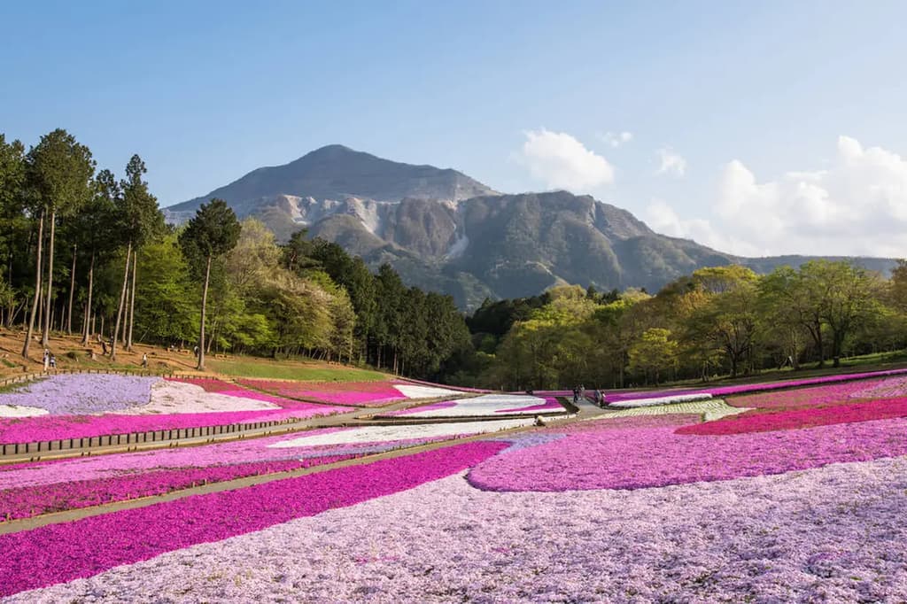 种植芝樱的区域是关东地区最大的之一,覆盖约17,600平方米,有9个品种的40多万株植物。在开花期间,秩父路特产市场将在山坡旁举行,销售美食、纪念品和农产品,城镇将举办各种活动。为什么不来看看色彩丰富的芝樱呢?