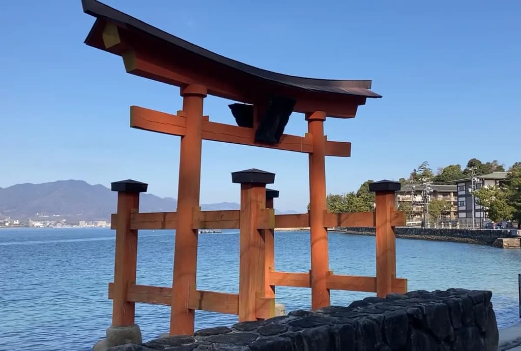 首先映入眼帘的是海中的红色鸟居。它有小严岛神社的氛围。这里人很少,所以您可以在这里度过时光。
