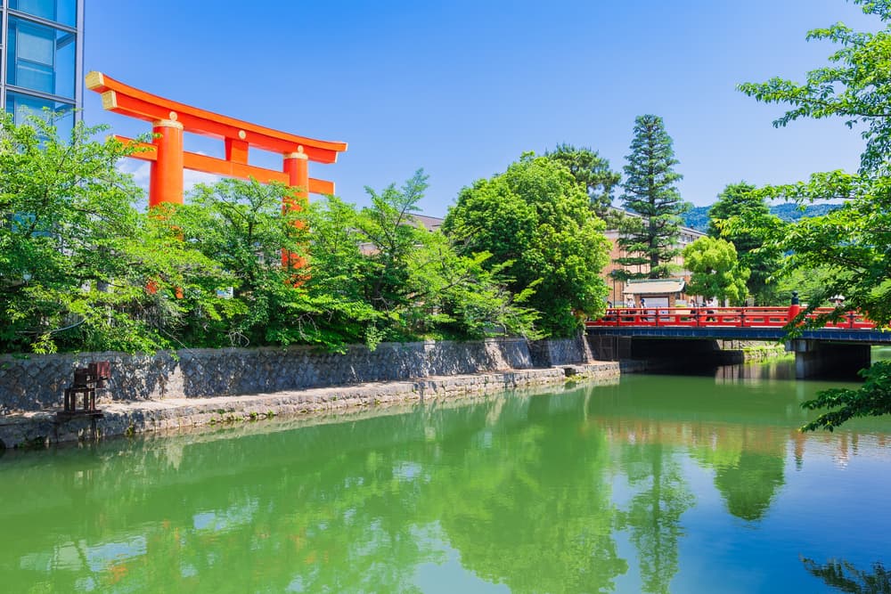 平安神宫建于1895年,是京都相对较新的神社。它有"神苑",这是当时造园技术的巅峰之作,"大极殿",美丽的朱红色神社建筑,以及"大鸟居",已成为冈崎市的象征。