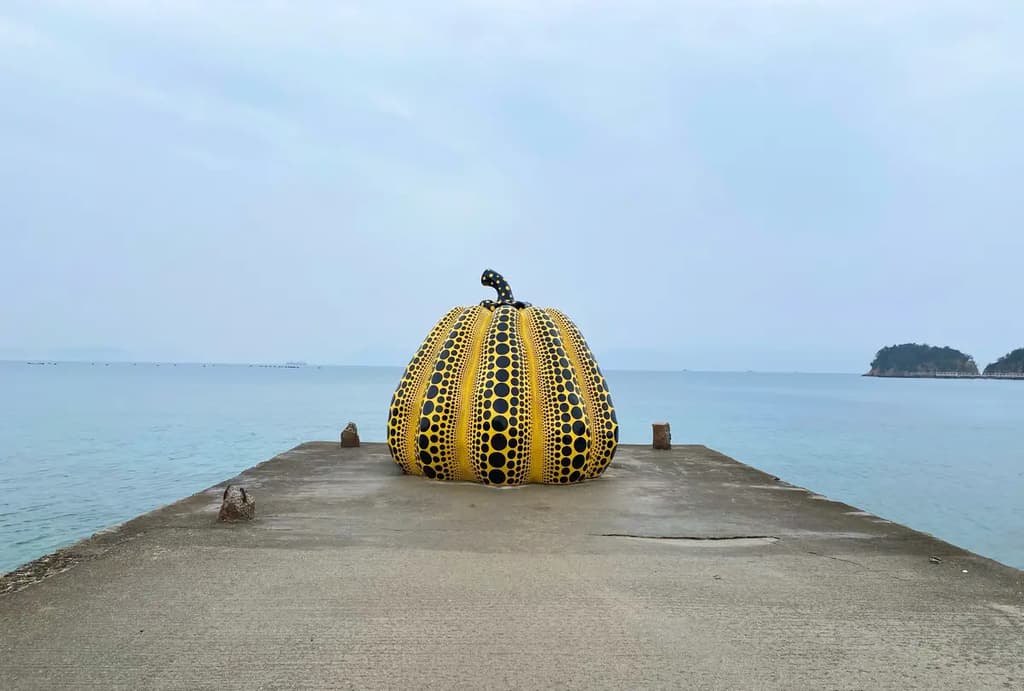 黄南瓜是草间弥生在直岛的另一件标志性作品,位于海边,是岛上最受欢迎的拍照景点之一。南瓜的鲜艳颜色与濑户内海的蓝色形成美丽对比。