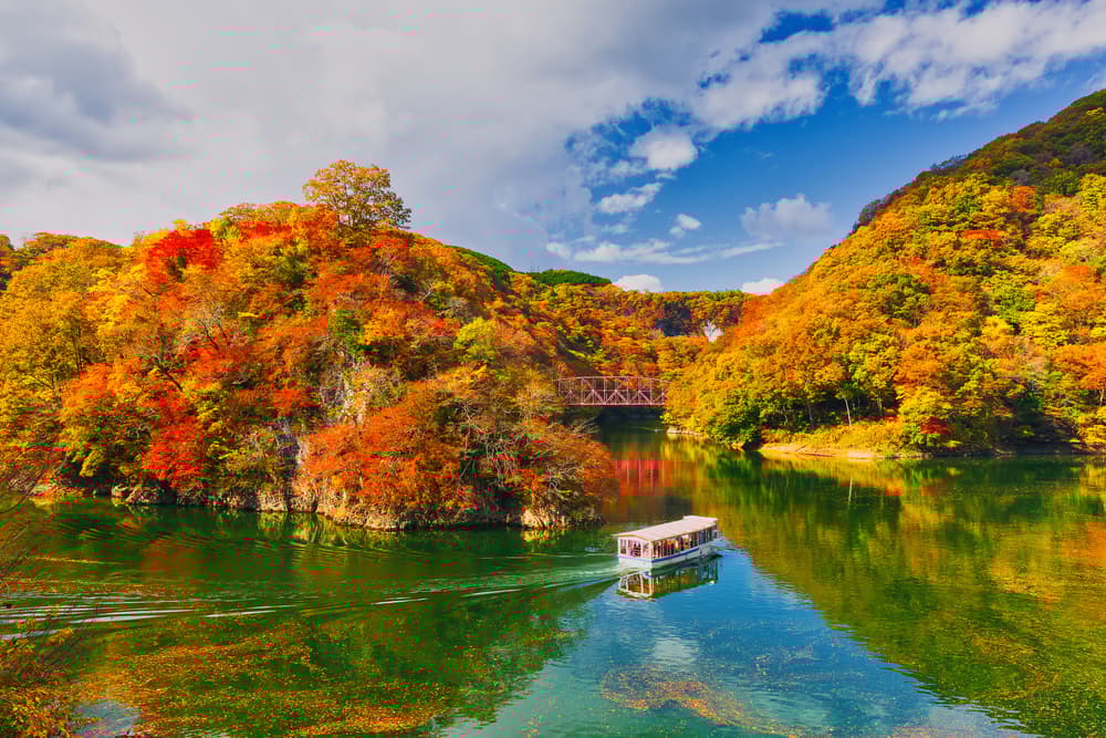 帝释峡游船是一项很棒的活动,让游客在约40分钟的时间里巡游名为神龙湖的狭长湖泊时观赏红叶。湖泊和河流也是热闹的秋季景点,您可以享受皮划艇、赛格威体验和可以过夜的旅馆露营地。