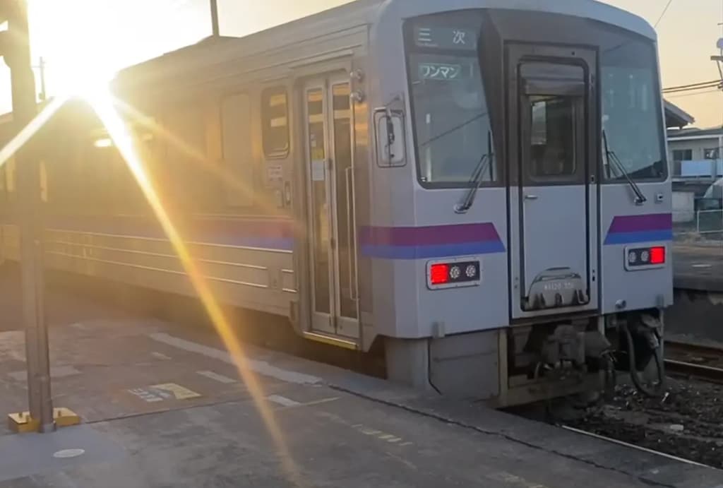 从备后落合站开往三次的火车只有大约四名乘客在颠簸!我能够舒适地坐着。