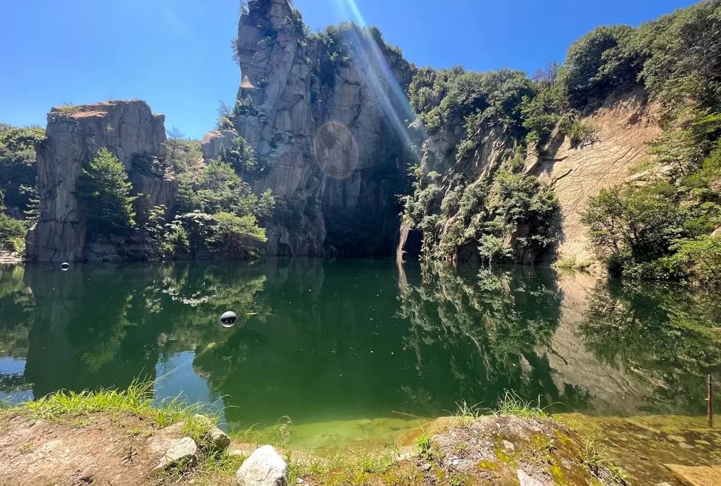 我参观的第一个景点是一个美丽的绿色湖泊,如此神秘✨我感觉像是迷失在吉卜力的世界里!这显然是雨水在前采石场积累并将其变成池塘的地方。