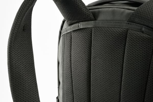 背板和通用背带的反面均采用空气网材料。这可以防止接触身体的区域感到闷热,并提供舒适的携带体验。网状表面经过处理,光滑且不粗糙,最大限度地减少了摩擦造成的织物磨损。